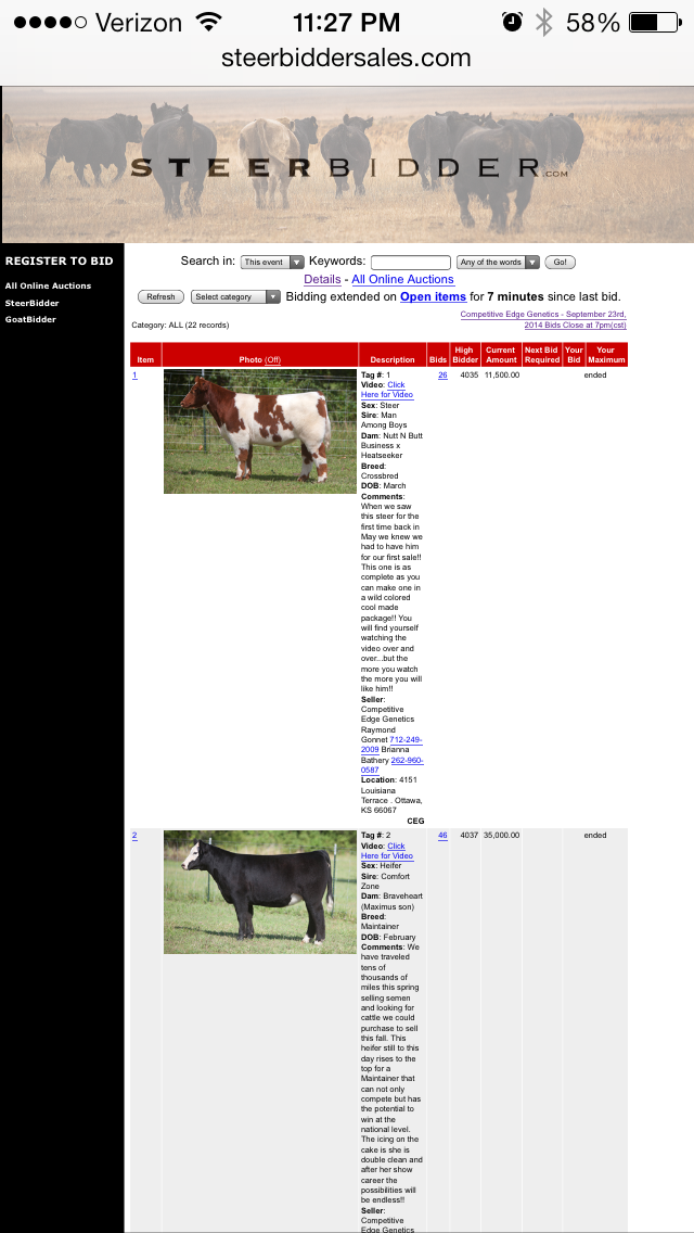 We can’t thank everyone enough for all of the support with our first online sale!! We shattered expectations and set the bar extremely high but we are excited to now see what this years show season will bring!! Huge thank you to Chris Rosa and his wife for managing the sale we highly recommend Steerbidder to anyone!!