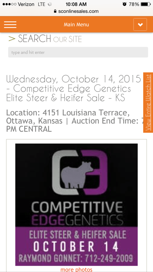 Message: Just sending out a reminder that Michaelis Show Cattle steer and heifer sale starts tomorrow ending Sunday at 7 pm on http://www.firstchoiceonlinesales.com. Any questions or if you would like to swing by give me a call. Cattle are just off of I-70 at the Maple Hill exit. Thanks Clint Michaelis.
