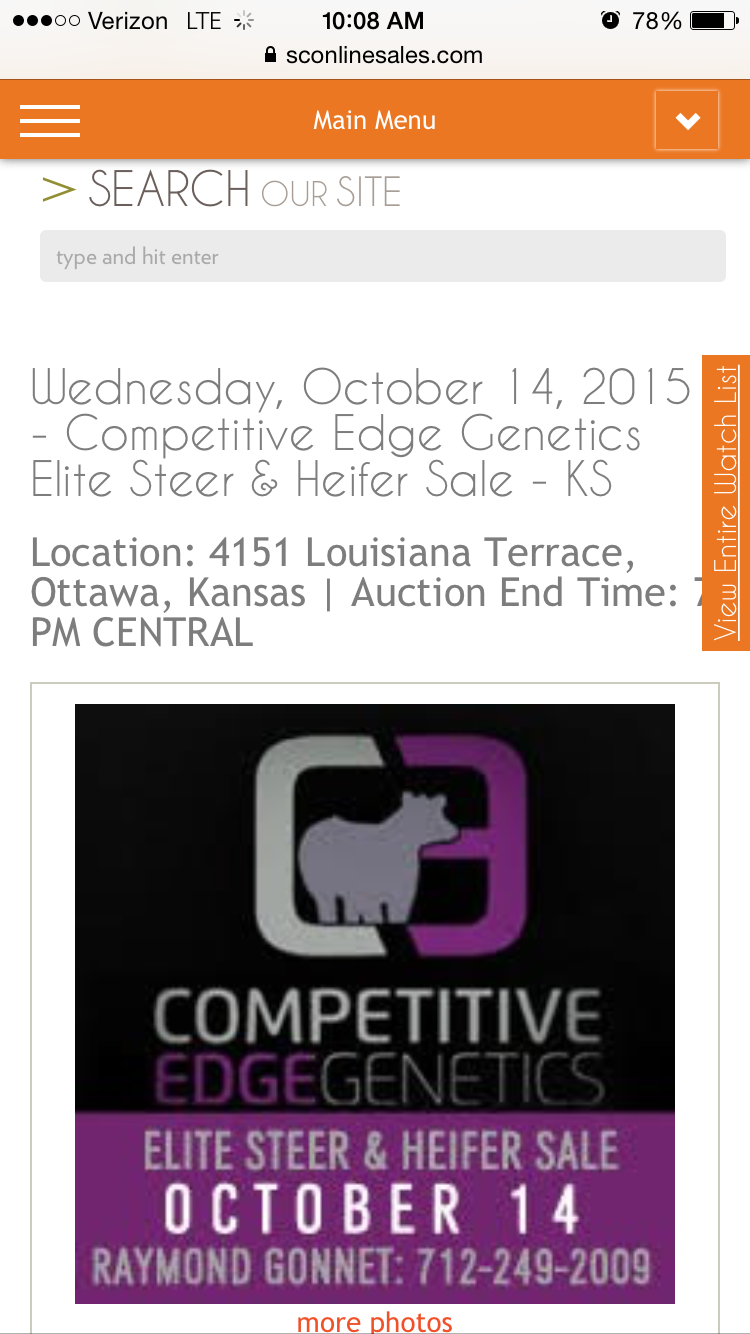 Message: Just sending out a reminder that Michaelis Show Cattle steer and heifer sale starts tomorrow ending Sunday at 7 pm on http://www.firstchoiceonlinesales.com. Any questions or if you would like to swing by give me a call. Cattle are just off of I-70 at the Maple Hill exit. Thanks Clint Michaelis.