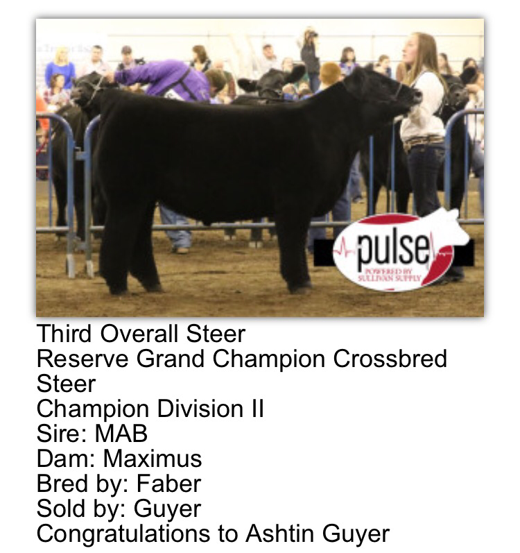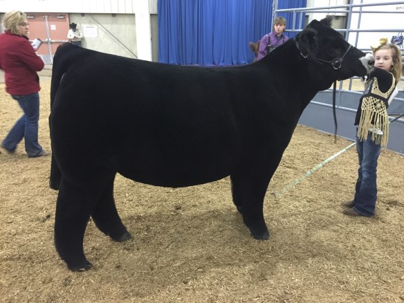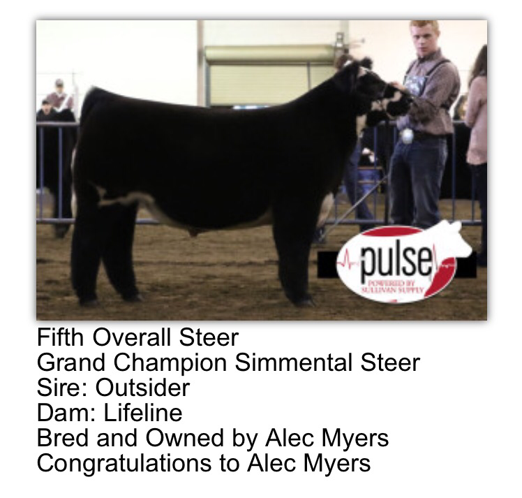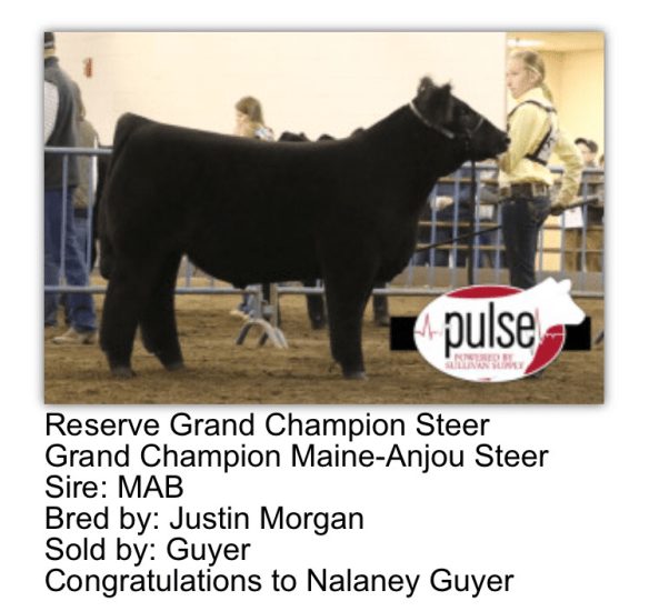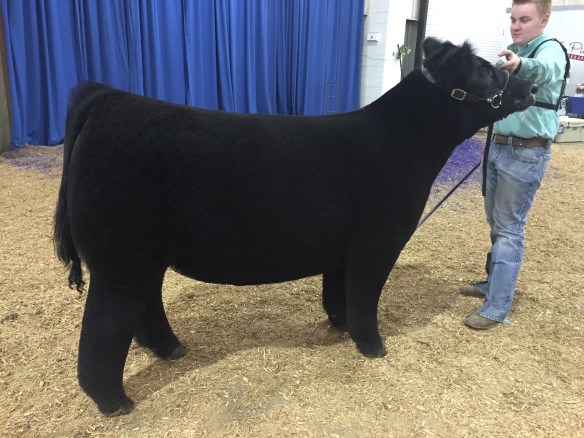 Class winning Maine steer both rings shown by the Morey family raised by Brent Powell sold by CEG/Bennett Show Cattle sired by MAB