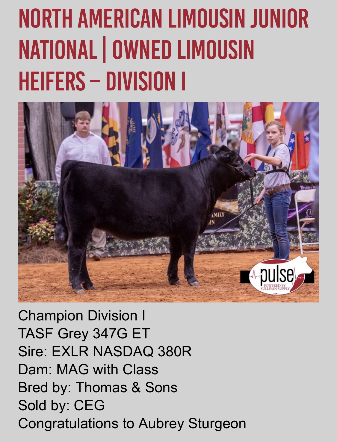 More exciting news from the 2020 Charolais Junior National Show!! Congratulations again to the Bell family of Oklahoma on Reserve Grand Champion Owned Female!! Her mother was purchased at CEG in the fall of 2014 and has gone on to do incredible things for the Bell family!!