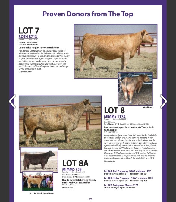 Check out the feature lot 7 female (mother to Gold Dust) selling safe in calf to Control Freak!!
